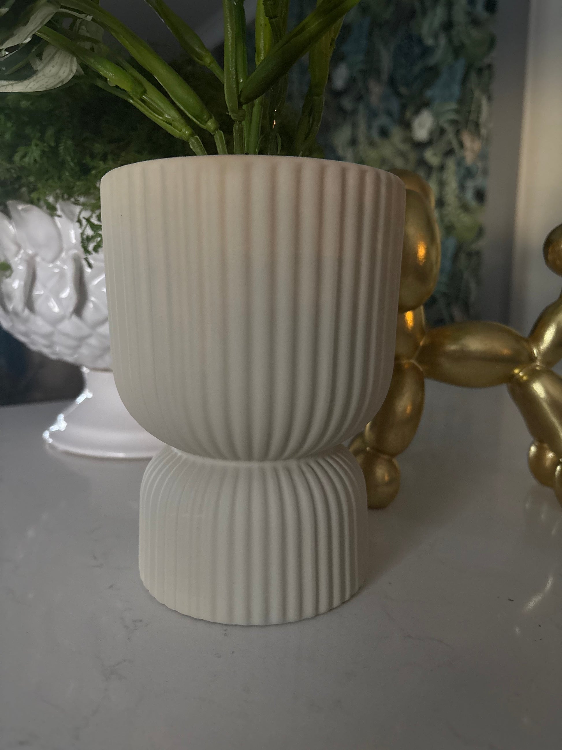 Exude sophistication and elegance with the Palina Pedestal Pot. The luxuriously soft velvet touch is sure to add a touch of luxury to any room, while the modern ivory color adds a contemporary twist to any decor. Elevate your space with this exclusive and timeless piece.
